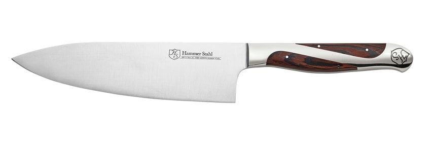 A good chef’s knife is the cornerstone of any great cutlery collection, and the Hammer Stahl 6” Chef’s Knife is a great choice for any home chef. This chef’s knife is forged from German steel and features a quad-tang handle for superior balance and easy handling. The handle is made of a combination of stainless steel and Pakkawood which gives it a unique design that sets it apart from all other knives in your collection. To make the chef’s knife more efficient, this blade features a sloped bolster and the blade extends through the heel. Whether you are preparing piles of vegetables or slicing up your favorite meat, this 6” Chef’s Knife from Hammer Stahl is a must-have for your cutlery collection, get yours today!