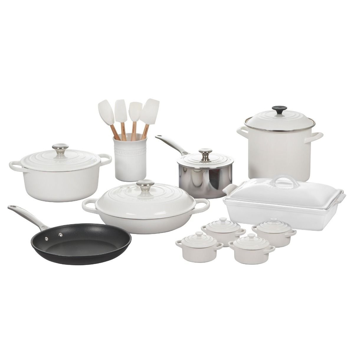 Le Creuset 20-Piece Mixed Material Cookware Set (White) Features: