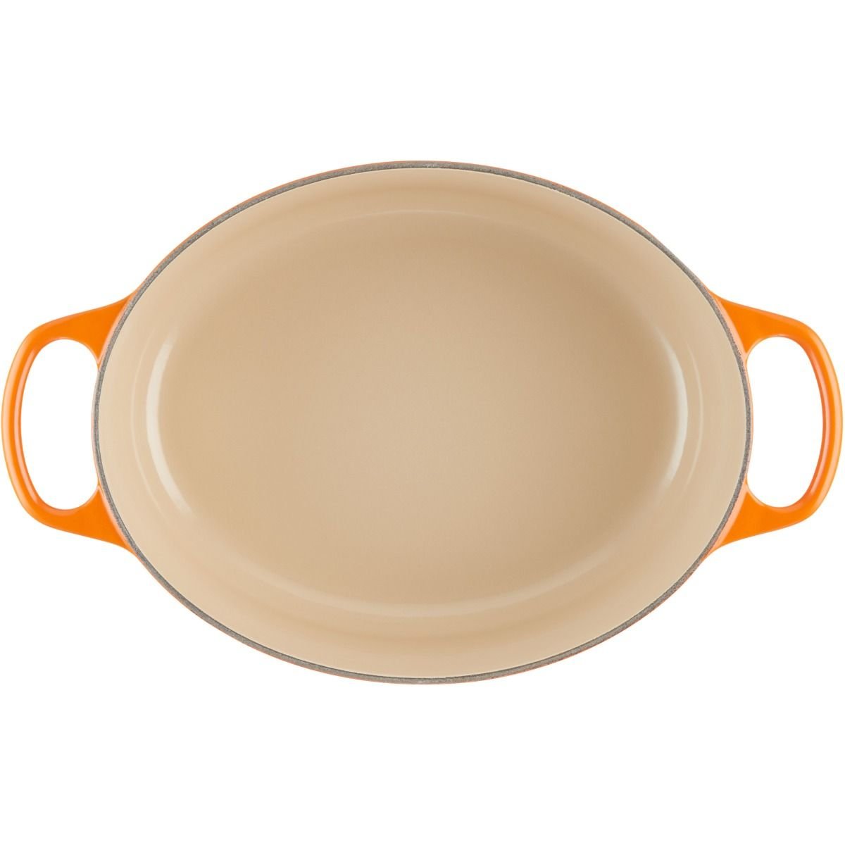 This 5 Quart Flame Orange Le Creuset Oval Dutch Oven can handle the longest pork loins, full-sized pit hams, whole poultry, and more with ease! The Le Creuset Signature cast iron Dutch oven construction retains and radiates heat in such a way that your food will be come out fork-tender and delicious every time. Make party-sized portions of casseroles, soups, stews without worry you will run out of food. This oval Dutch oven also makes great serveware for cold foods! An investment into a Le Creuset Oval Dutch Oven will pay for itself over and over during a lifetime of use. No matter how you decide to use this Signature Enameled Cast Iron Le Creuset Flame Orange 5 Quart Oval Dutch Oven, you can be absolutely thrilled with the final, fabulous results.