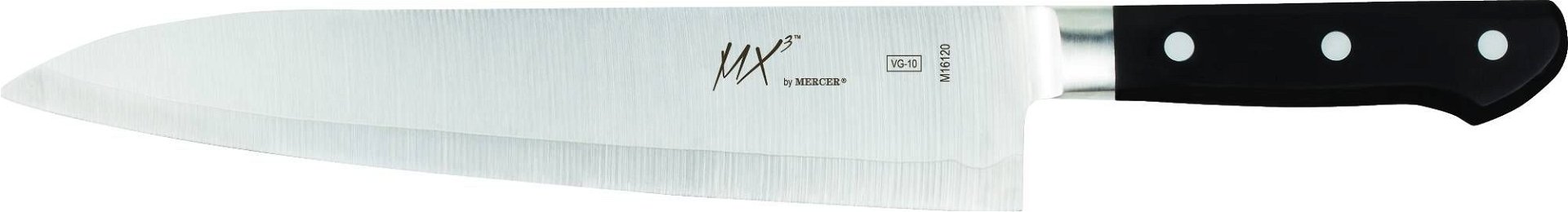 Hone your chef skills to a razor’s edge with the professional-grade Mercer Cutlery MX3 gyuto knife. This versatile Mercer gyuto knife (M16120) is a Japanese-style chef’s knife that can prepare stir-fried chicken & vegetables, choice cuts of steak, delicate sushi wraps, and more—whatever you throw at it, the Mercer MX3 gyuto knife is almost never a wrong choice.