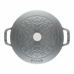 Bring your family together with hearty roasts and soups with the Staub Round Cocotte also known as a French or Dutch Oven. Crafted from strong, durable cast iron this heavy weight dutch oven will be your go to cookware for numerous family favorite recipes including but not limited to macaroni and cheese, braised beef and chocolate souffle. The tight-fitting lid retains essential moisture and features Self-Basting spikes that contribute to a more effective basting while you’re cooking. The smooth enamel bottom works on all stovetops and is oven safe up to 500 degrees Fahrenheit. With no seasoning needed you can start making dinner meals and desserts everyone will love. The lovely graphite grey color and chip-resistant finish makes for a perfect centerpiece while serving and with a lifetime warranty you can expect to have this wonderful Staub Round Cocotte/Dutch Oven to pass down to generations in your family.