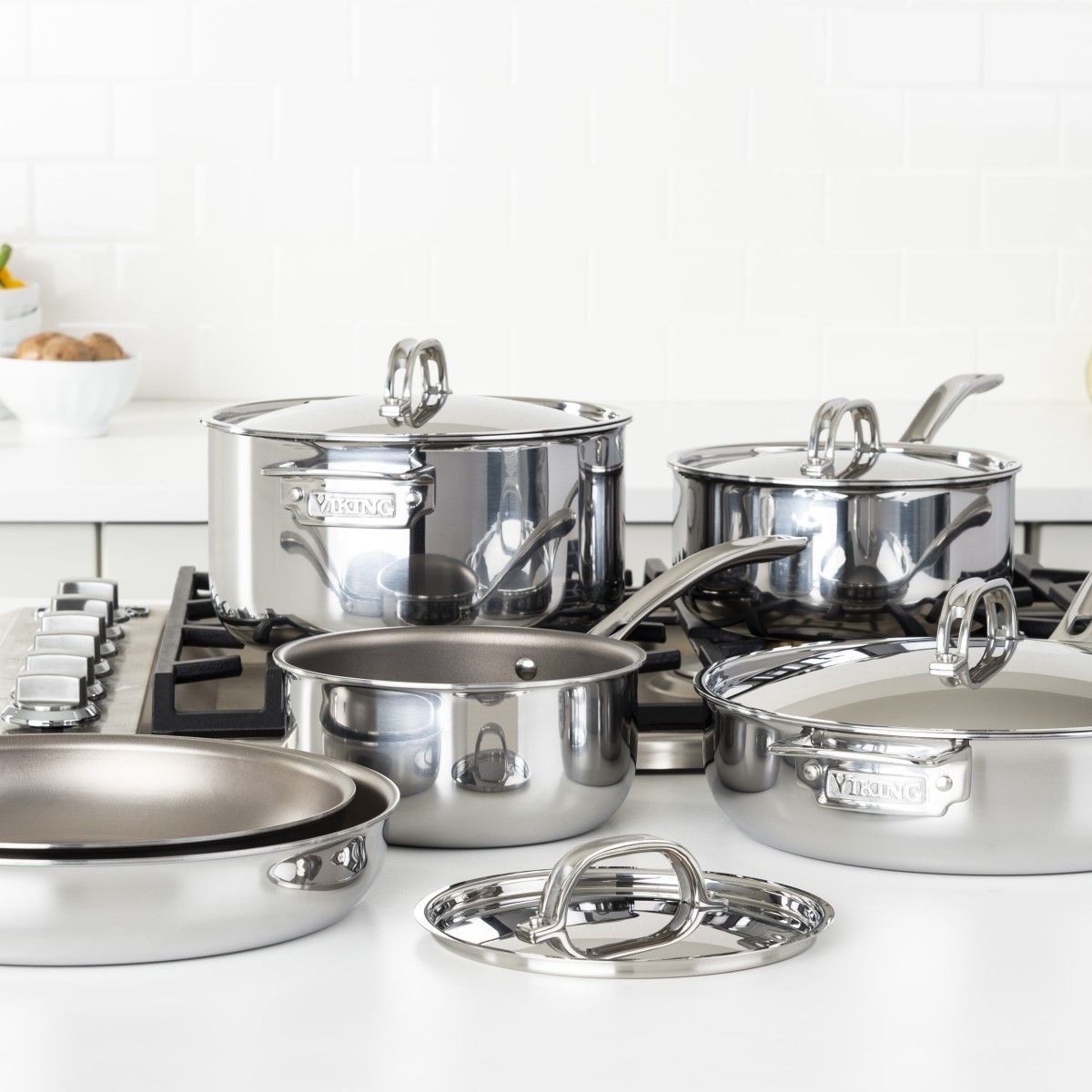 Viking Titanium 7-Ply Mirror 10-Piece Cookware Set includes: