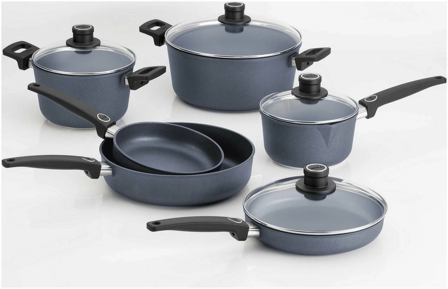 - 10-Piece cookware set from the Woll Diamond Plus Induction series