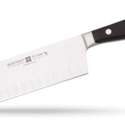 The wavy or serrated edge allows an easy cut through crusty food like a traditional roast and crispy bread. - The Wusthof Classic Knife blade with the hollow edge