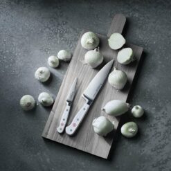 The Wusthof Ikon Classic series is made up of modern knives for the modern chef, designed with clean lines and using the same handle material as the Classic Series. This material resists fading so your knives will look as good years from now as they do today, and given that the Ikon Classic Series will require more of an investment than the previously mentioned Wusthof Lines, this is an invaluable feature. The Ikon Classic Series is made to provide a superior cutting experience, with a double bolster, perfectly balanced blade, and full tang. While not as wide a selection as the Classic or Gourmet Series, the Ikon Classic Series does contain numerous knife styles and sets, so this cutlery line is a great choice for those who are willing to invest more for the highest quality knives on the market and want to retain a modern aesthetic in their kitchen.