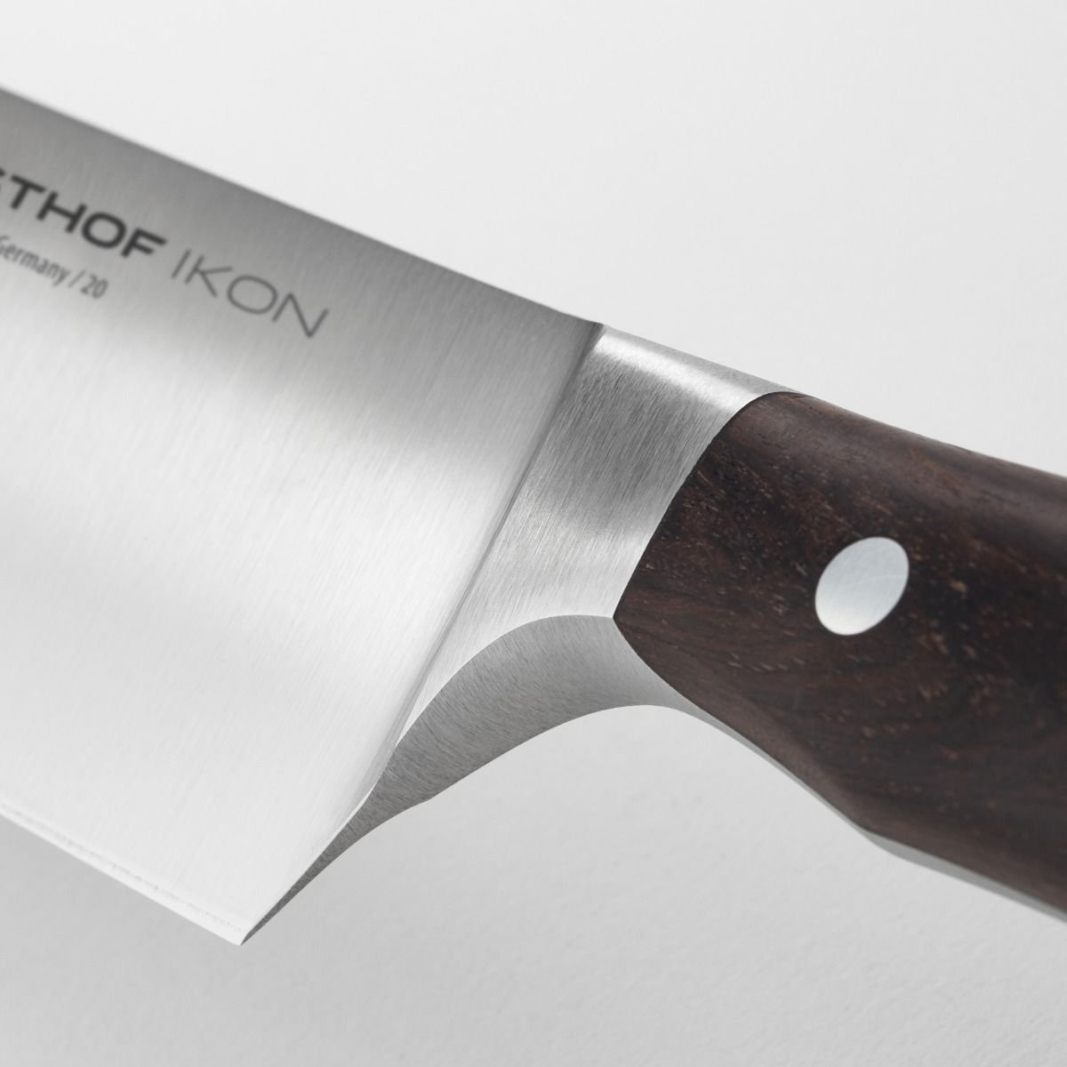 Each in the Wustof IKON cutlery line starts out as a single piece of carbon steel which is forged into a full-tang knife with a balanced weight and ergonomic feel. The blade is tempered and sharpened many times before the tang is inset with a handle of pure, choice African blackwood. This exotic hardwood is, according to Wusthof, technically and aesthetically superior to ebony wood in every way, providing a comfortable feel in the hand that won’t vary with humidity levels and temperature.