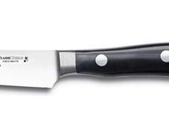 - Includes one 3.5″ blade and one serrated 4.5″ blade with blade covers